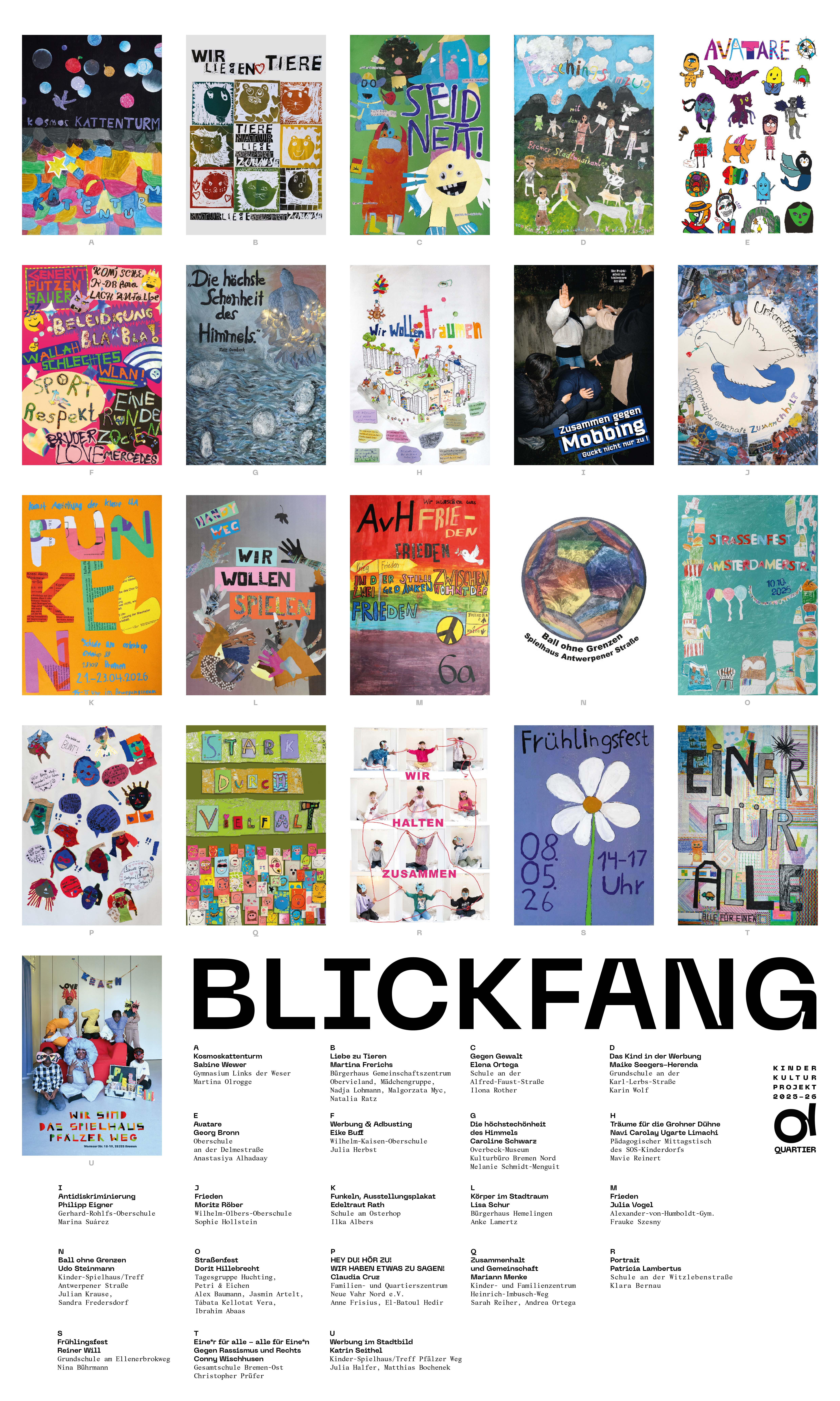 Plakate sind überall – sie informieren, werben, provozieren. Doch eine Stimme fehlt meist: die der Kinder und Jugendlichen. Das stadtweite Projekt BLICKFANG der QUARTIER gGmbH gibt jungen Menschen diese Stimme und eine Plattform, auf der sie gehört wird.