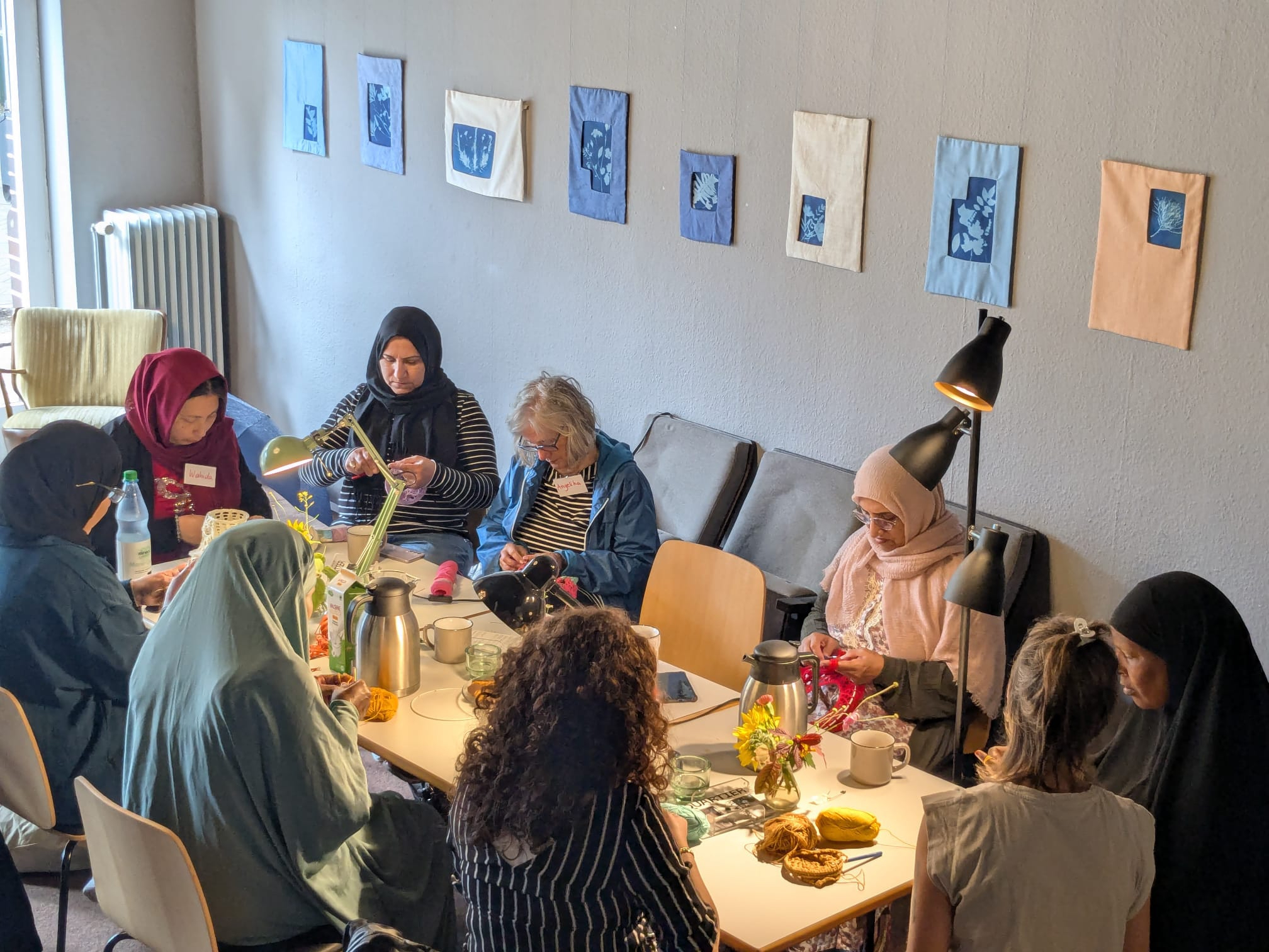 Ziel war das NUNATAK, wo eine Ausstellung zu Blaudrucken den Wandel von Farbe und Material durch Sonnenlicht erfahrbar machte. Bei einem Getränk gab es abschließend Gelegenheit, sich über das Gehörte und Gesehene auszutauschen und den Nachmittag ausklingen zu lassen.