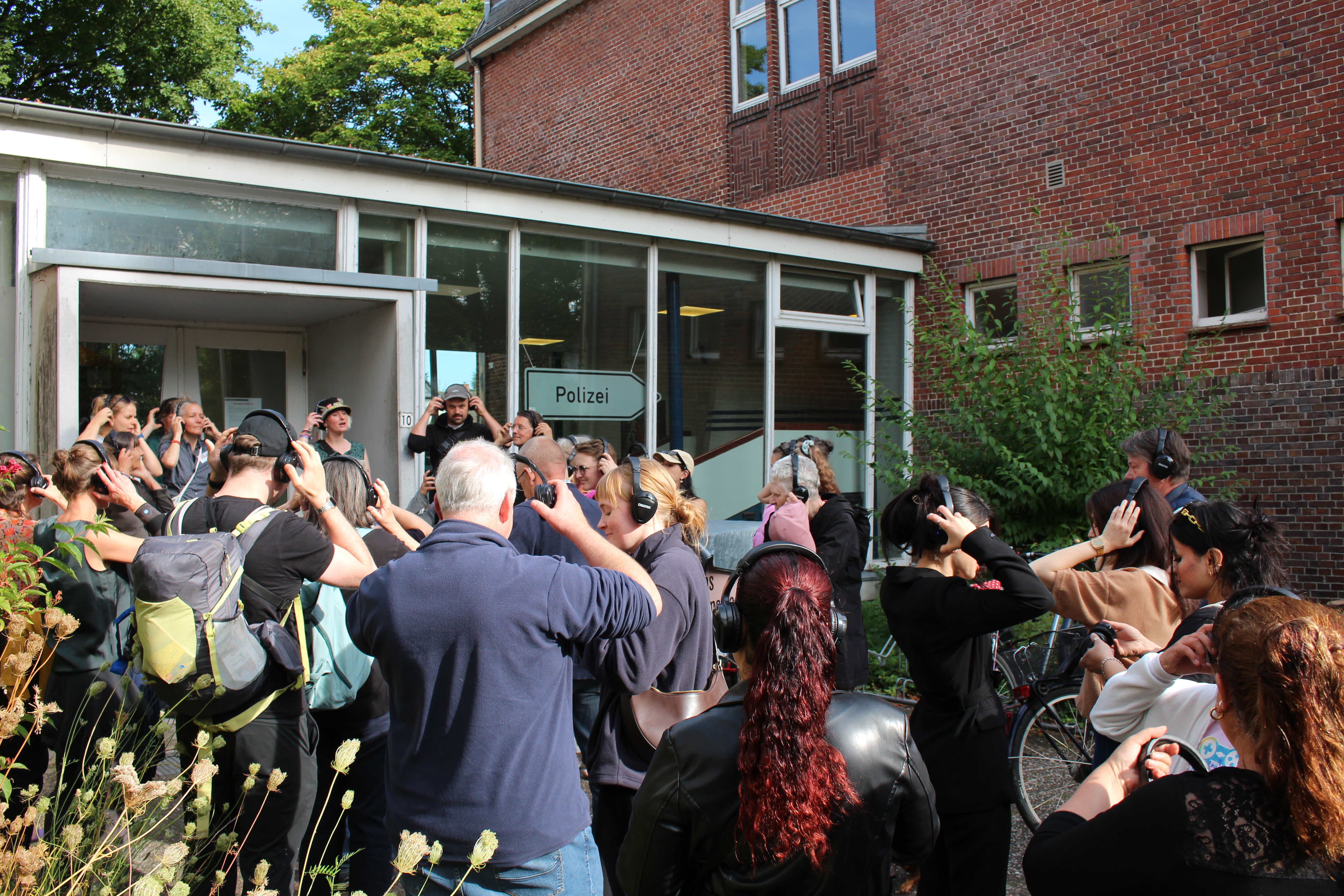 Anschließend führte der von QUARTIER produzierte Audiowalk durch den Stadtteil. Die Bremer Künstler:innen Eva Matz und Janis E. Müller haben dafür im Sommer Stimmen, Eindrücke und Geschichten aus Blumenthal gesammelt und in eine künstlerische Klang-Performance verwandelt, die den Perspektiven der Menschen vor Ort Raum gibt.