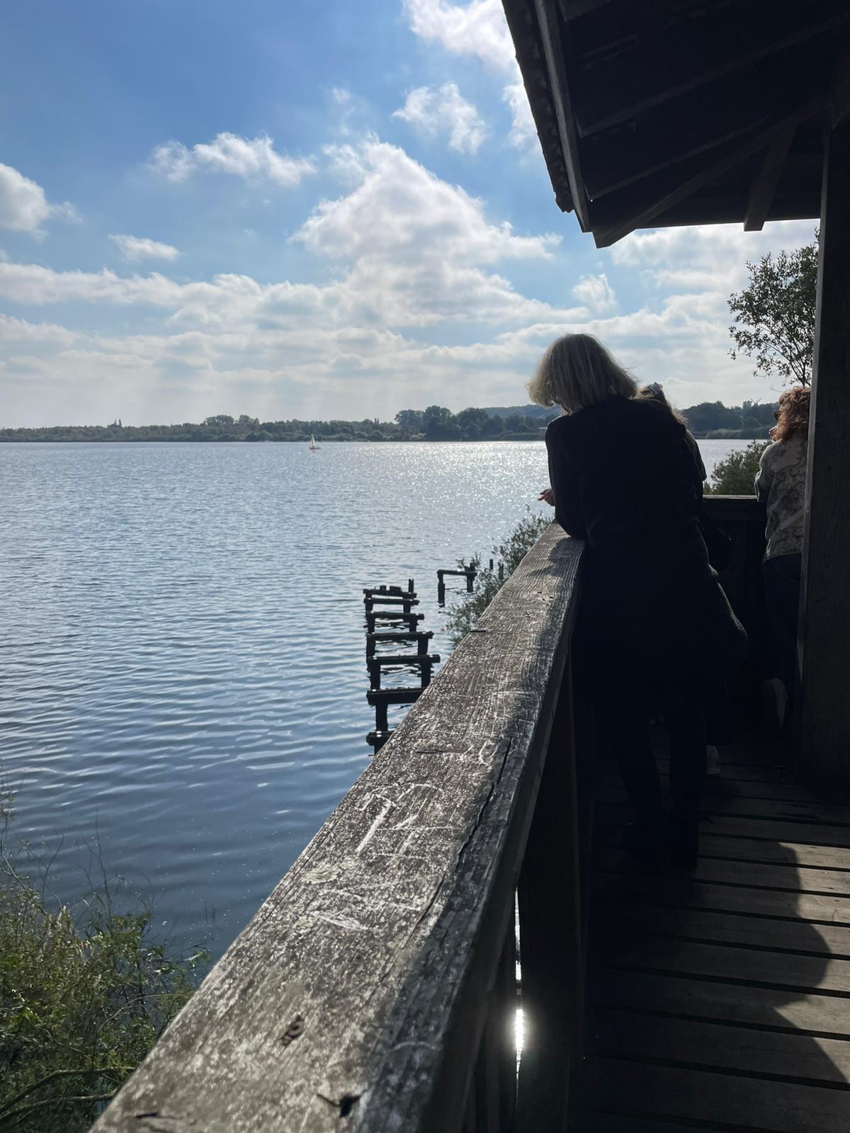 Nachdem wir unsere in einem kleinen Wäldchen gelegenen Hütten bezogen hatten, sind wir an den Bederkesaer See gefahren und haben uns bei einem gemeinsamen Mahl im am See gelegenen Restaurant gestärkt. Dann sind wir bei strahlendem Sonnenschein auf dem rund sieben Kilometer langen Weg einmal um den See gewandert.
