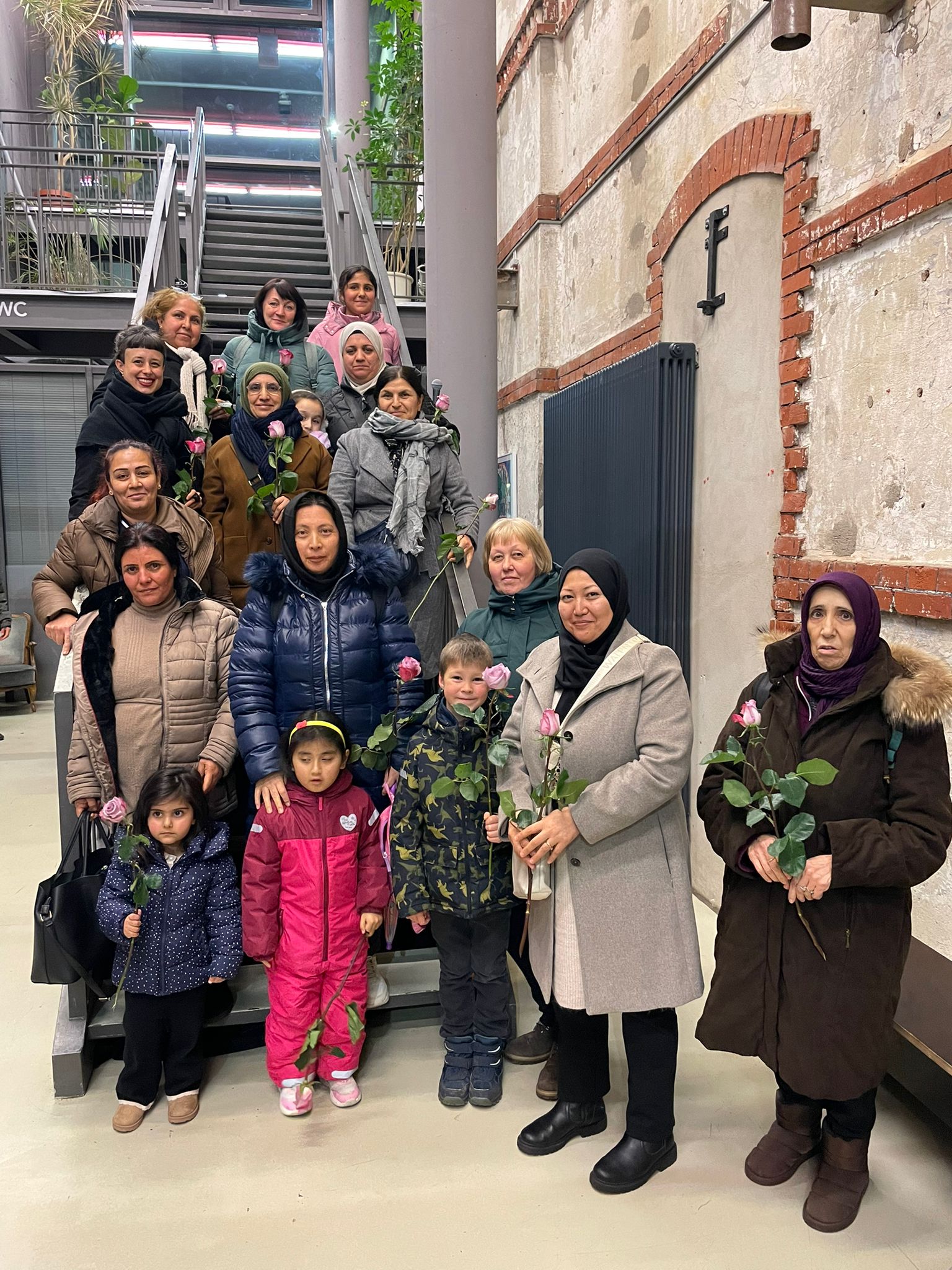 Über einen Besuch in der Schwankhalle konnten die Teilnehmer:innen unserer Textilwerkstatt CraftWerk im NUNATAK in Blumenthal sich Ende November freuen. Sie haben der Künstlerin Emilia Sting geholfen, die Kostüme für die Aufführungen des Kindertanzprojektes „Zartbitter Bittersüß“ von steptext dance project anzufertigen, in dem es um Kinderarbeit auf Kakaoplantagen in Westafrika und die Rechte der Erde geht. 16 Frauen webten per Hand ganz umweltgerechte Applikationen aus textilem Verschnitt. Als Dankeschön gabs einen Ausflug für die Helferinnen zur Aufführung am 30.11. in der Schwankhalle und für jede eine Rose.