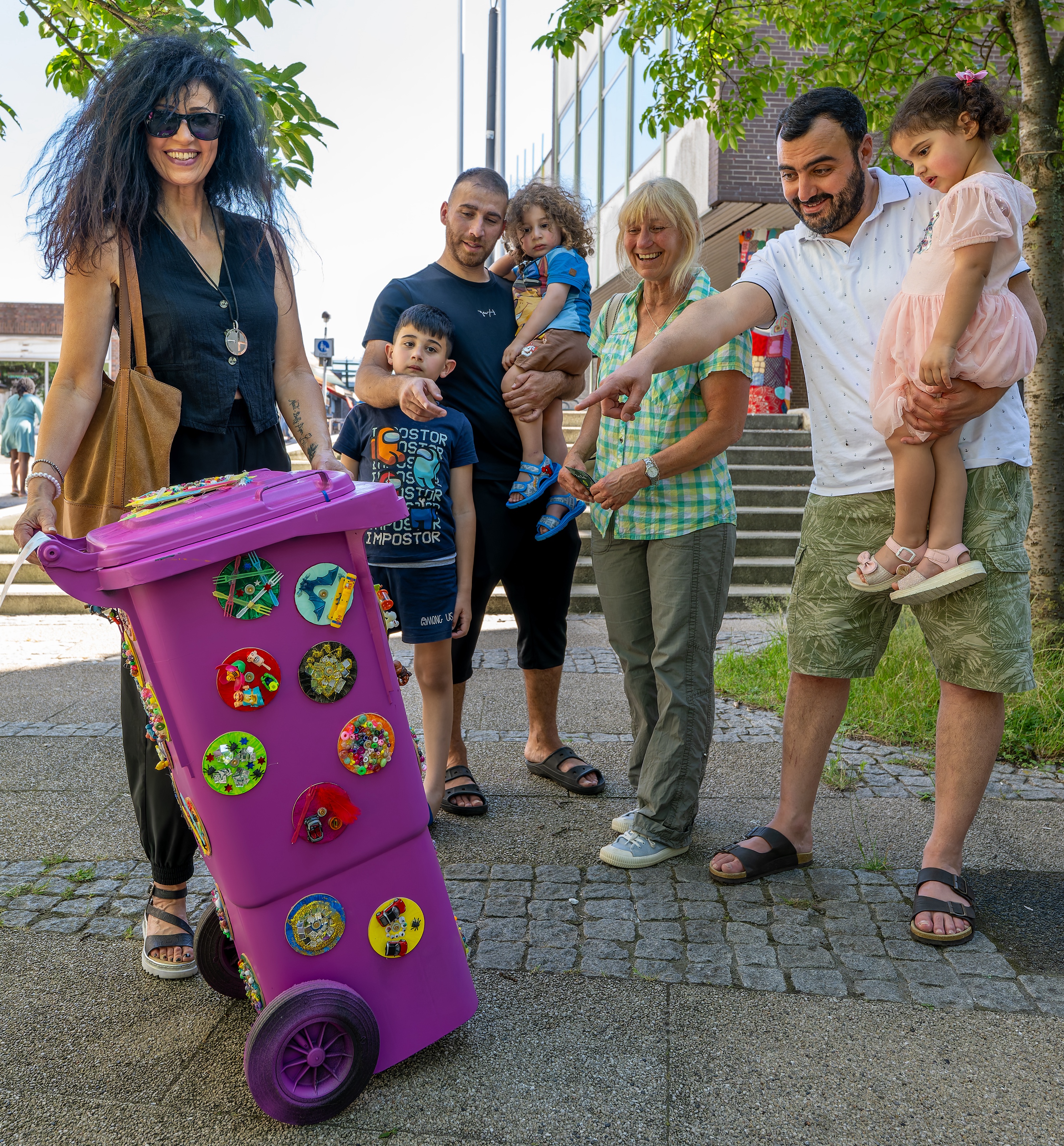 Wie schon 2024 werden die künstlerisch gestalteten Mülltonnen den Sommer über auf den Flächen der Wohnungsbaugesellschaften in Kattenturm zu sehen sein.