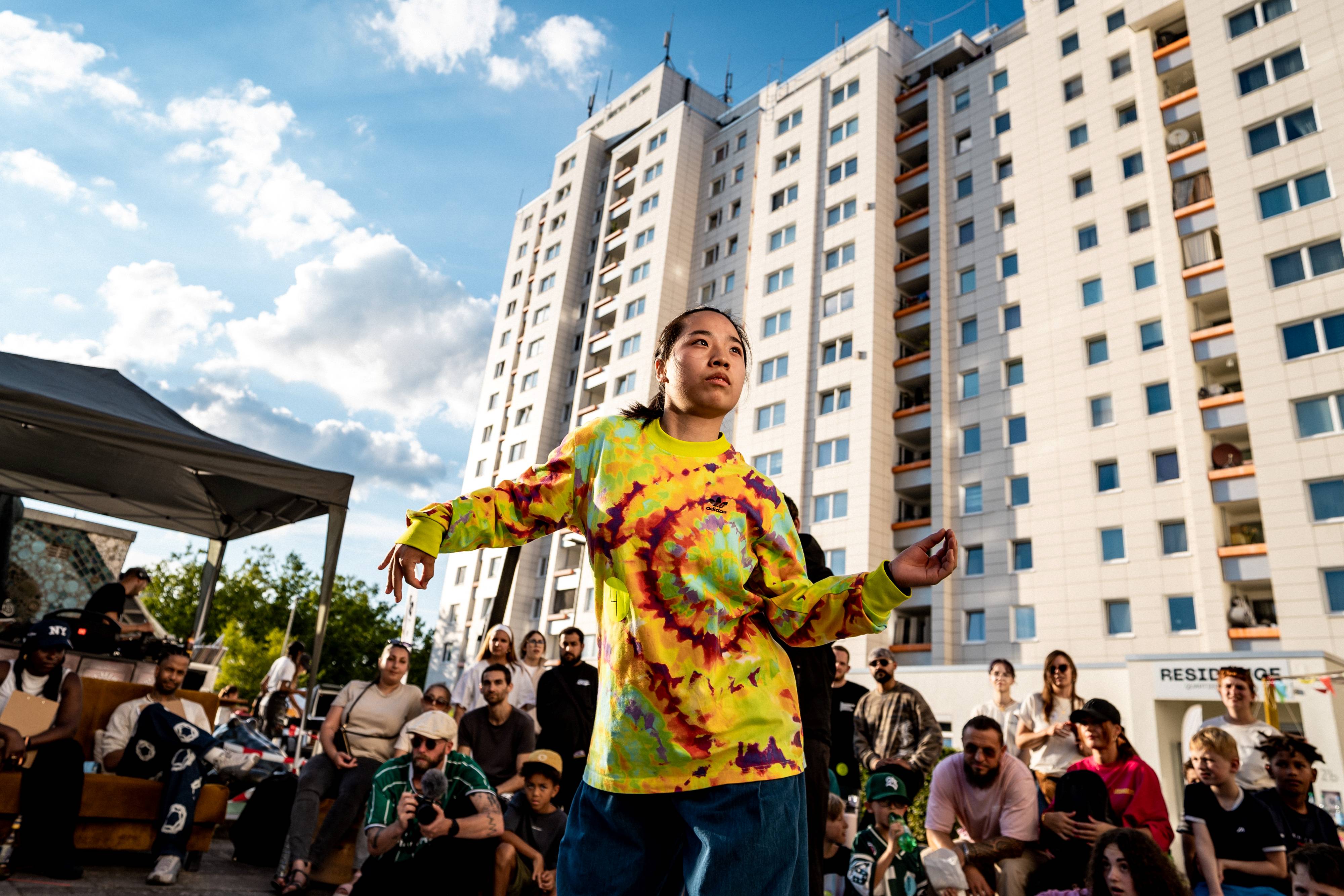 Einen Angst-Moment gab es diesmal beim Kunstfestival Tenever: Einen Regenguss kurz nach Beginn am Freitagnachmittag. Aber dann spielte das Wetter doch mit, die Workshops und offenen Angebote waren gut besucht und Groß und Klein hatten Spaß auf dem Platz zwischen OTe-Bad und Hochhäusern und im Tanzsaal von RESIDANCE. Nähen, Siebdruck, Straßenkunst, Tanzworkshops und nicht zuletzt das Dance Battle, das wieder ein Highlight des Festivals war, standen auf dem Programm. Und als bei der Clown-Performance am Freitagabend die Popcornmaschine ausfiel, fiel niemandem weiter auf, dass das eigentlich nicht so geplant war...