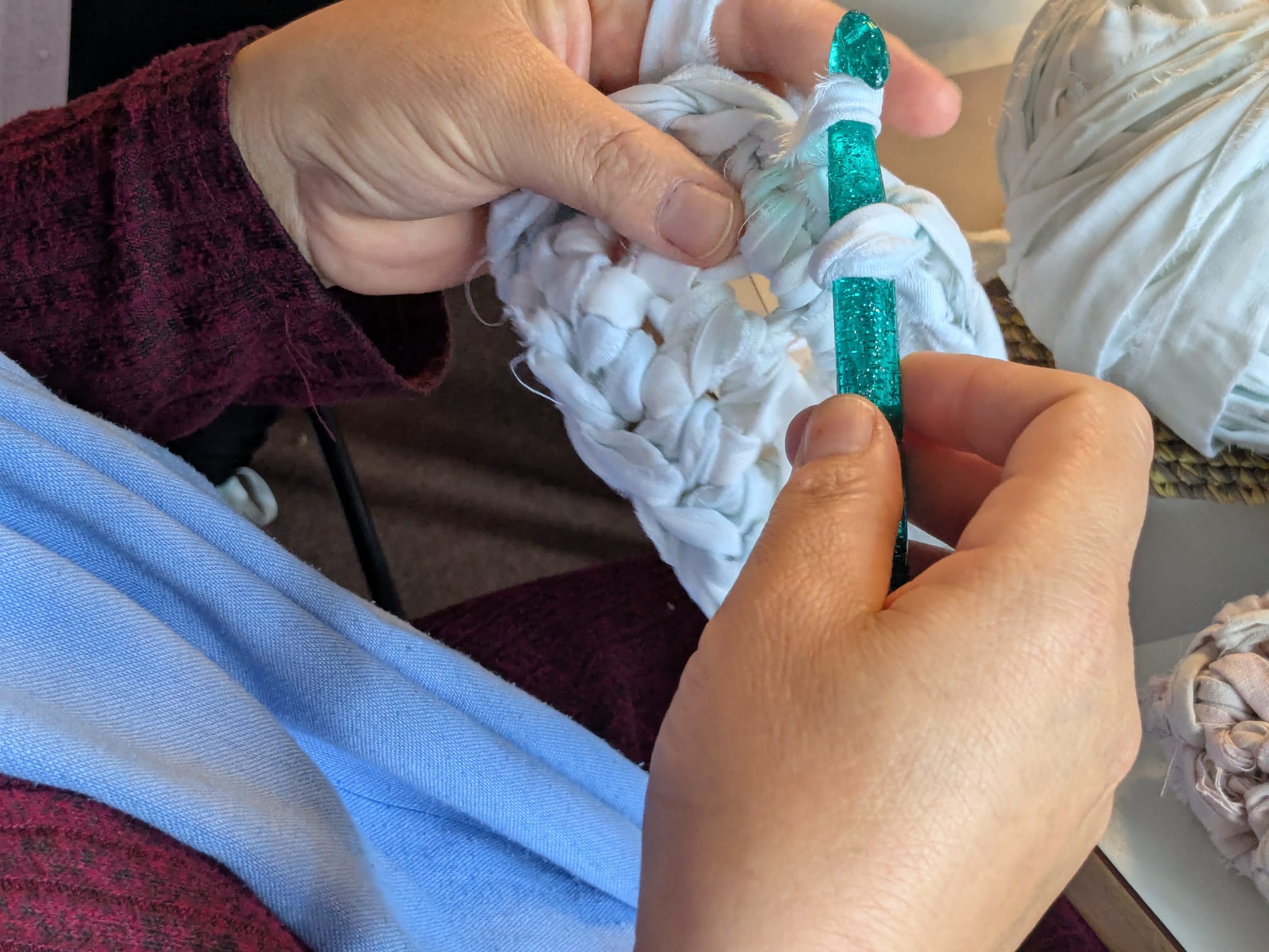 In einem weiteren künstlerischen Upcycling-Workshop im Juni mit dem Titel „Taschenspiele“ haben Interessierte unter Anleitung der persischen Künstlerin Setareh Tourian Taschen aus alten Laken geknüpft und geflochten. Im Laufe des Jahres wird es weitere Upcycling-Workshops geben.