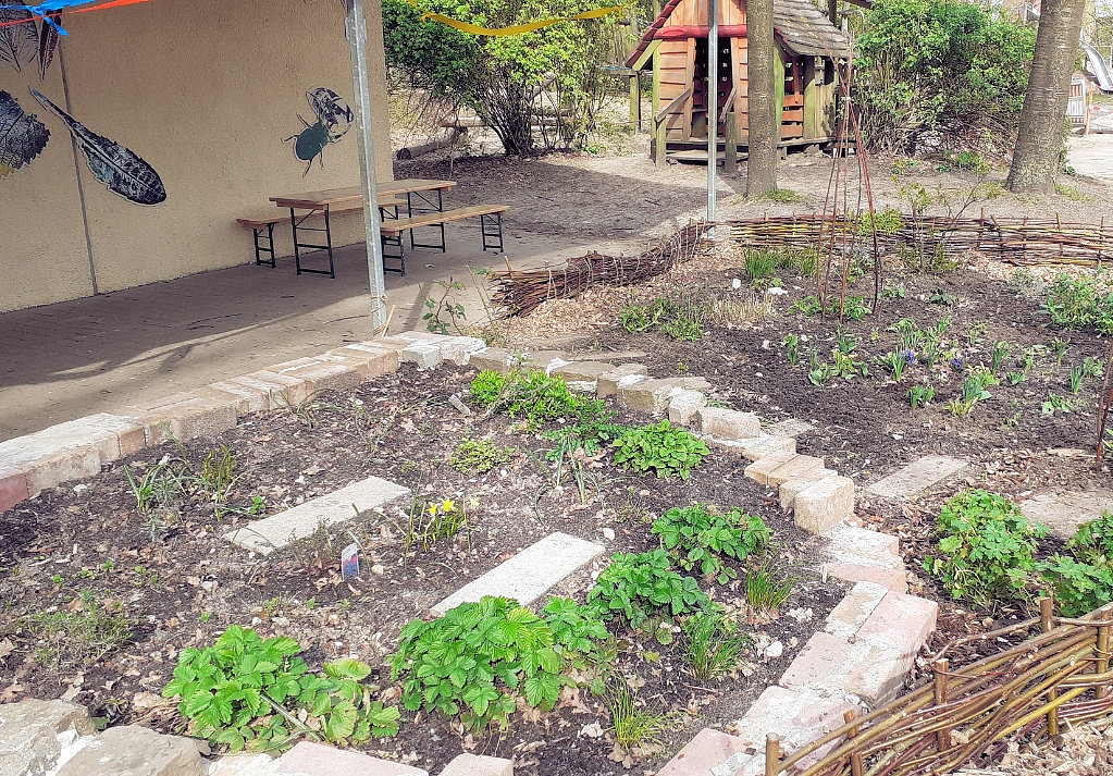 Unter Anleitung der Landschaftsarchitektin Sibylle Conradi haben die Kinder des Spielhauses in Begleitung zusätzlich ein verwaistes Beet in einen kleinen, bunten Zaubergarten verwandelt. Als Spielhaus-Garten-Projekt werden die neu angelegten Hochbeet- und Staudenflächen auch in Zukunft entwickelt und gepflegt.